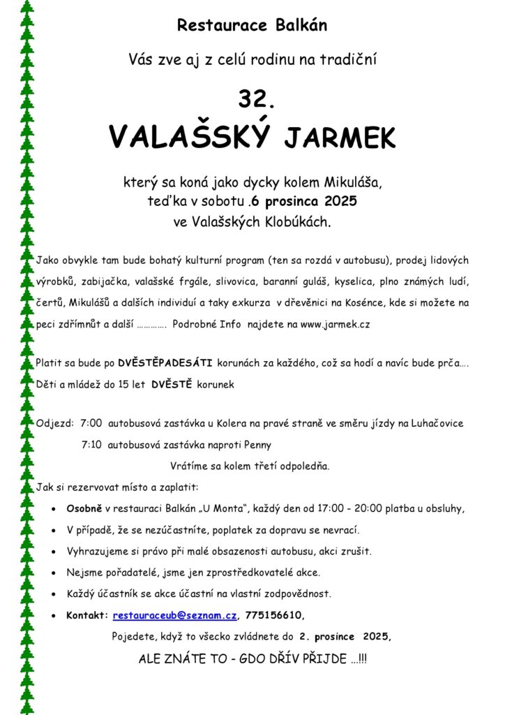 6. 12. sobota Zájezd Valašský Jarmek – rezervace probíhá v