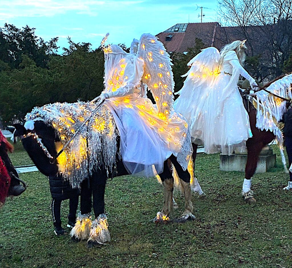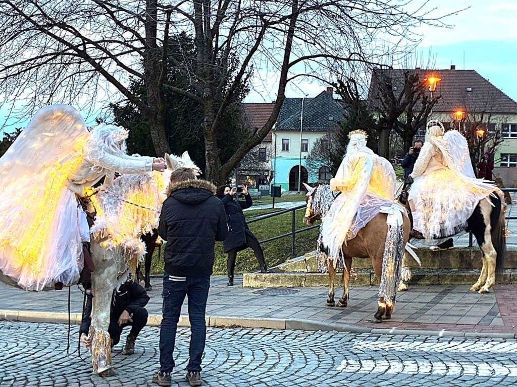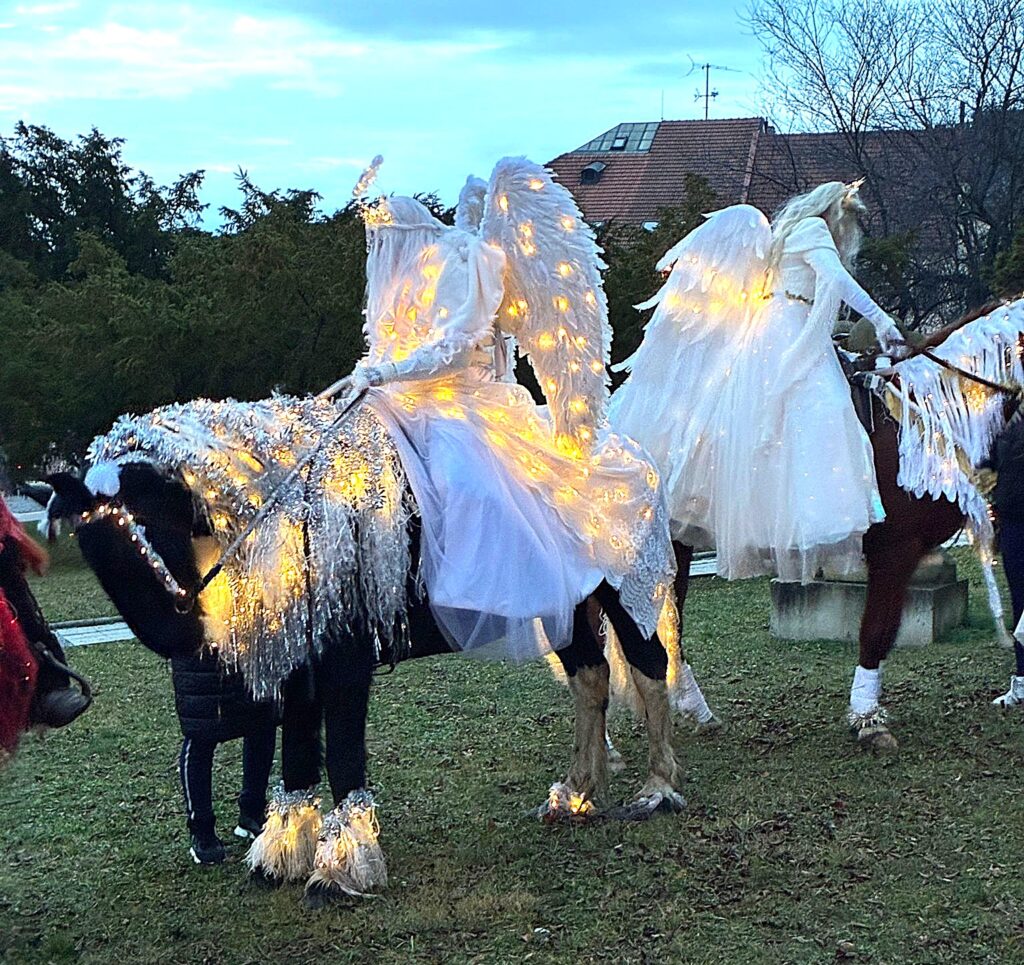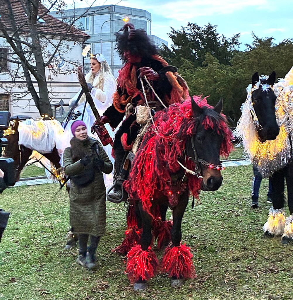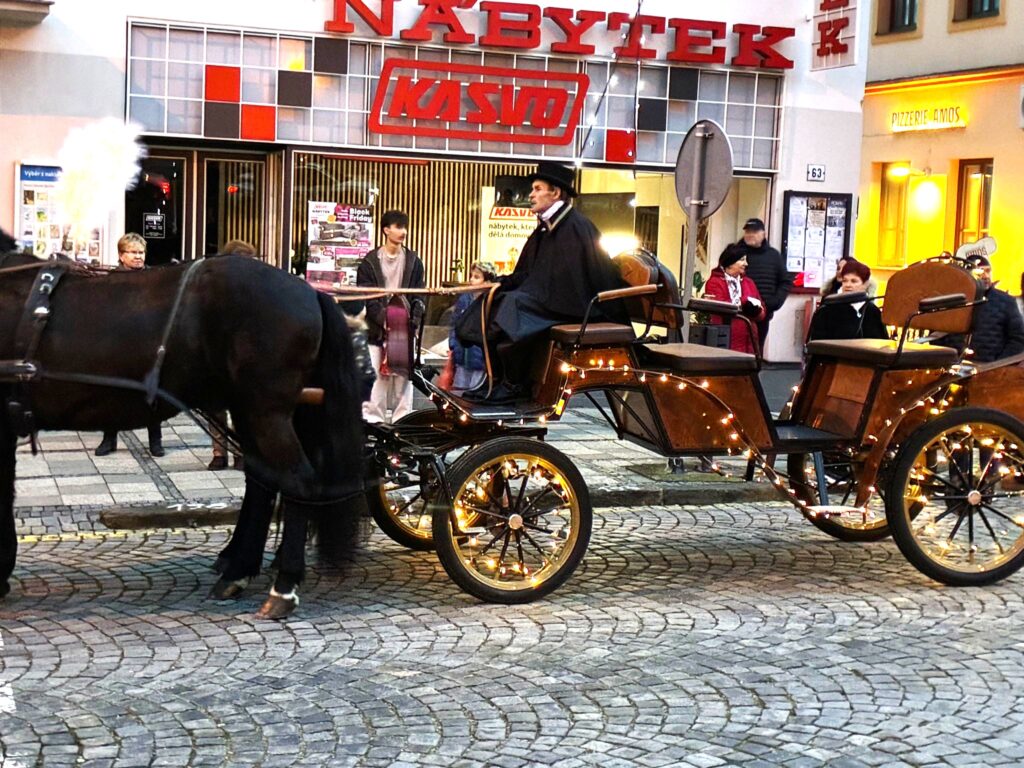 Obvykle přichází Mikuláš se svou družinou, tedy s andělem a čertem, 5. prosince. Letos Mikukáš poslal SMS, že jeho kočár má zpoždění, přijede do města Uherský Brod 6.prosince v 15 hodin. Proč ne? Patrně má Mikuláš nabitý program, tak si počkáme na Pátek 6.prosince. Počkali jsmesi a stálo to za to. Desítky, ba stovky dětí se svými rodiči přišly ke škole na Mariánském náměstí, aby přivítaly nejprve Mikulášův předvoj, tedy krásné anděly na koních, čerta taky na koni a nezbývalo, než se obrnit trpělivostí a vyčkat příchodu nebo příjezdu samotného Mikuláše. Trpělivost se vyplatila. Ulicí Přemysla Otakara II. od muzea se objevují první jezdci v zářivě bílých kostýmech. Když se přiblíží, je vidět, že jsou to andělé s nasvícenými andělskými křídly. Rodiče, dědové i babičky vytahují své mobily a zvěčňují krásné okamžiky pro své ratolesti, ale i pro sebe. Ale kde je Mikuláš? Hledáme v davu, procházíme náměstí a stále nic. Když tu se vytváří velký hlouček fotekchtivých občanů. Jdeme tím směrem A opravdu Mikuláš s jedním andělem, lépe řečeno andílkem se fotí tu s tím, tu s jiným. Sláva! Máme tu všechny. Všechny ano, ale kde je kočár. Dav neumožňuje se rychle zorientovat. Naštěstí výkřiky desítky hlasivek malých špuntů dávají tušit, že se něco dějed. A opravdu. Kočár i s vozkou dorazil! Mikuláš i s andělem nastupuje, zdraví se s davem. Usedá do kočáru. Před kočár, ale i za kočár se řadí jezdci či jezdkyně na koních, alias andělé a čert. Za jásotu vděčného publika publika se průvod dává do pohybu. Směr-okružní cesta městem Uherský Brod. Mikuláši, děkujeme, žes opět po roce přijels do Uherského Brodu